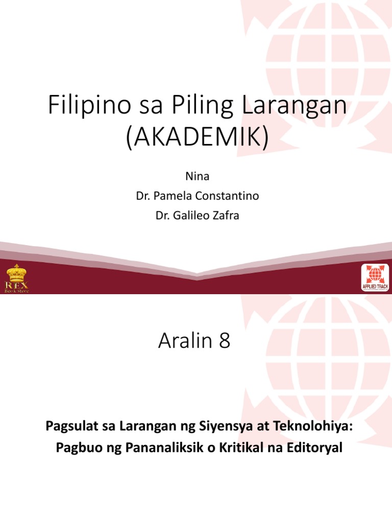 Aralin 8 Pagsulat Sa Larangan Ng Siyensya At Teknolohiya Pagbuo Ng Pananaliksik O Kritikal Na Editoryal Pdf