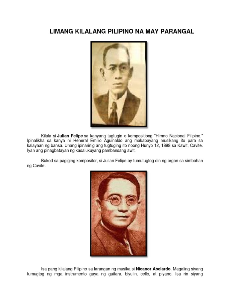 Limang Kilalang Pilipino Na May Parangal Pdf